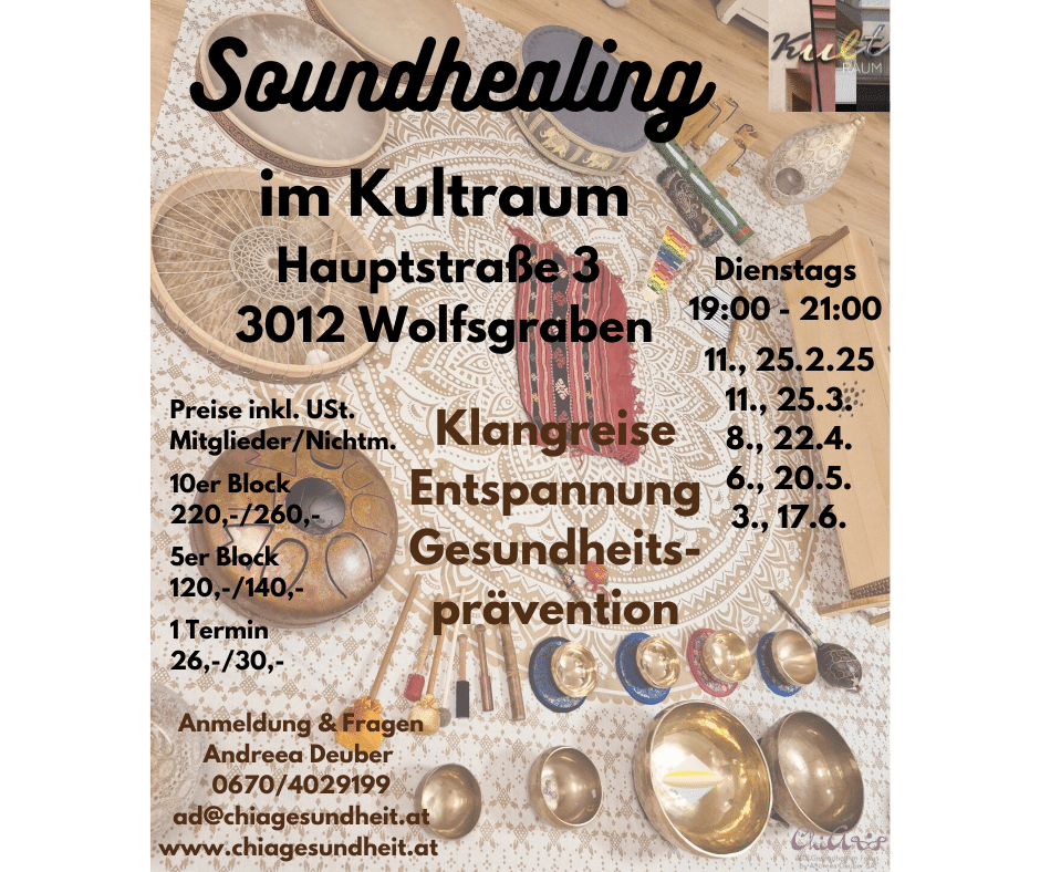 Bei dieser passiven Entspannungsreise lässt du dich nach Innen tragen. Von den Klängen getragen, erlebst du dich und deine Körper neu. Ob dein Körper über Anspannung und Blockaden in die Veränderung geht oder du eine fantastische Imaginationsreise erlebst, ist davor nicht vorauszusehen. Sicher ist, dass jede Klangreise anders ist und du jedes Mal was Neues erlebst.